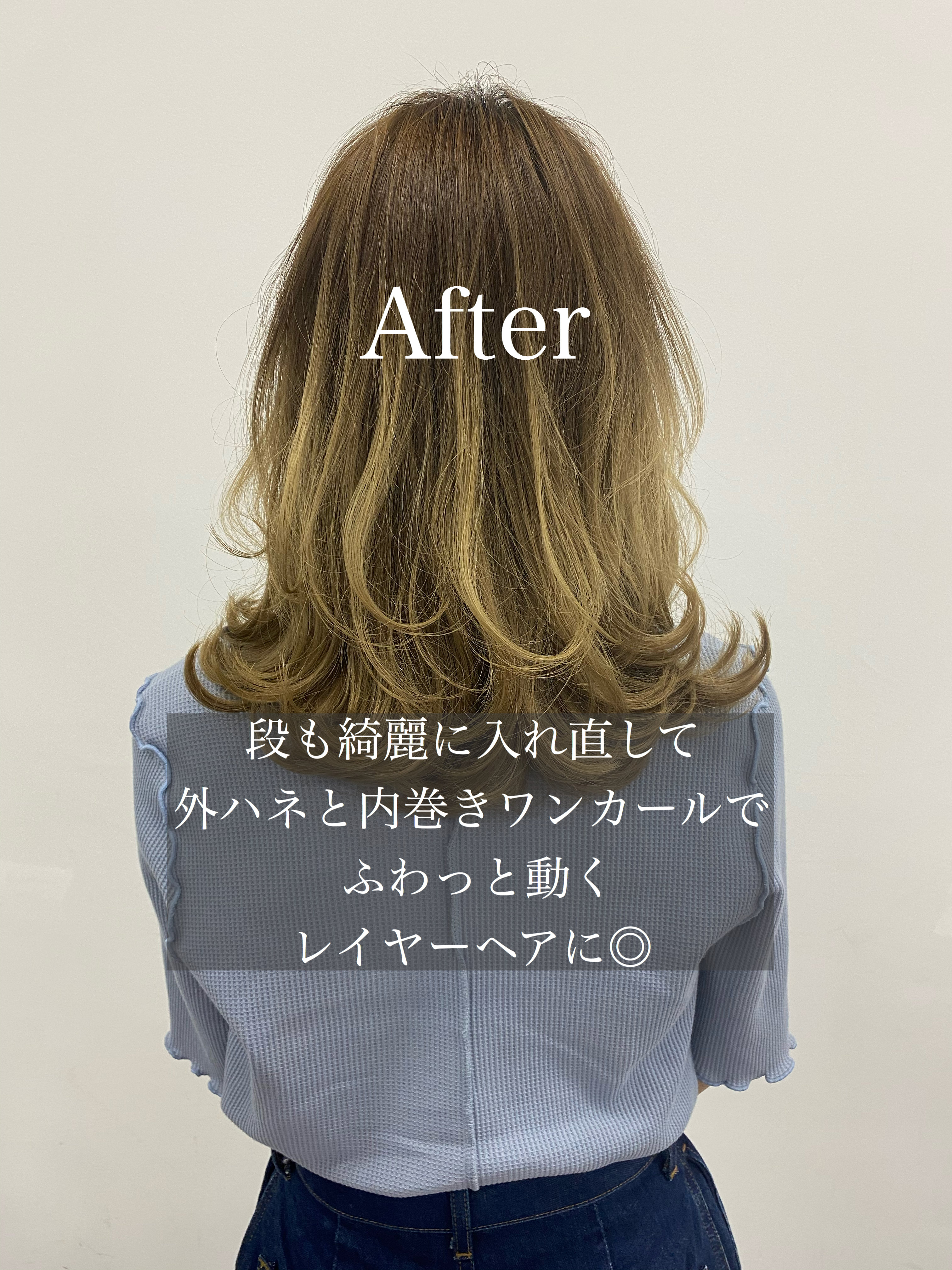 裾に厚みは残しつつ、表面はふわっと動かしやすいようにした今流行りのレイヤースタイルにしませんか?